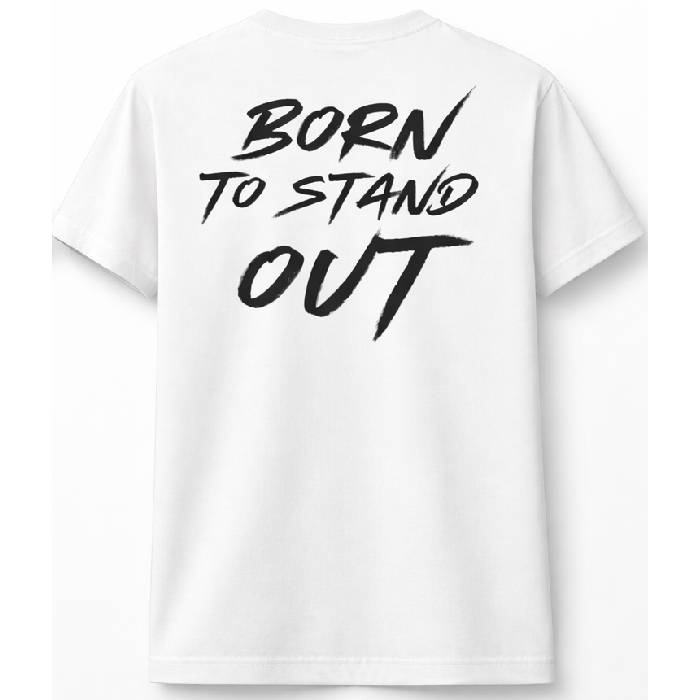 Crafted from high-quality, breathable cotton, this t-shirt offers a smooth, soft feel with a premium structured drape. The front features a subtle white โvelmoraโ script logo, delivering a clean and understated look, while the back is defined by a striking โBorn To Stand Outโ graphic in bold white typographyโdesigned to capture attention effortlessly.